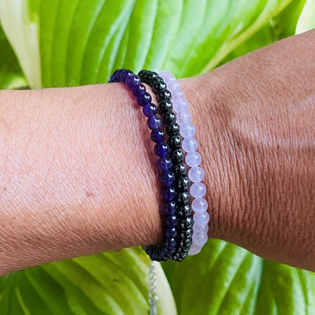 Ce bracelet associe la douceur du Quartz rose, la sagesse de l'Améthyste et la force de I'Hématite aimantée pour un parfait équilibre entre émotions, corps et esprit. Acier inoxydable. Long 16/21cm