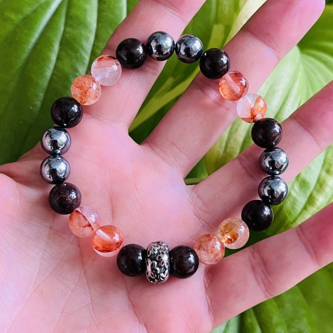 Grenat – Pierre de vitalité, elle ravive l’énergie, stimule la circulation et aide à dépasser la fatigue. Sur le plan émotionnel, elle redonne courage et force intérieure, tandis qu’elle ouvre à une meilleure connexion à sa force spirituelle et à l’ancrage.