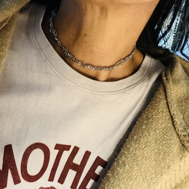 Porté seul, il souligne élégamment le cou avec une touche moderne. Associé à d’autres bijoux, il devient la pièce parfaite pour un look tendance et assumé.