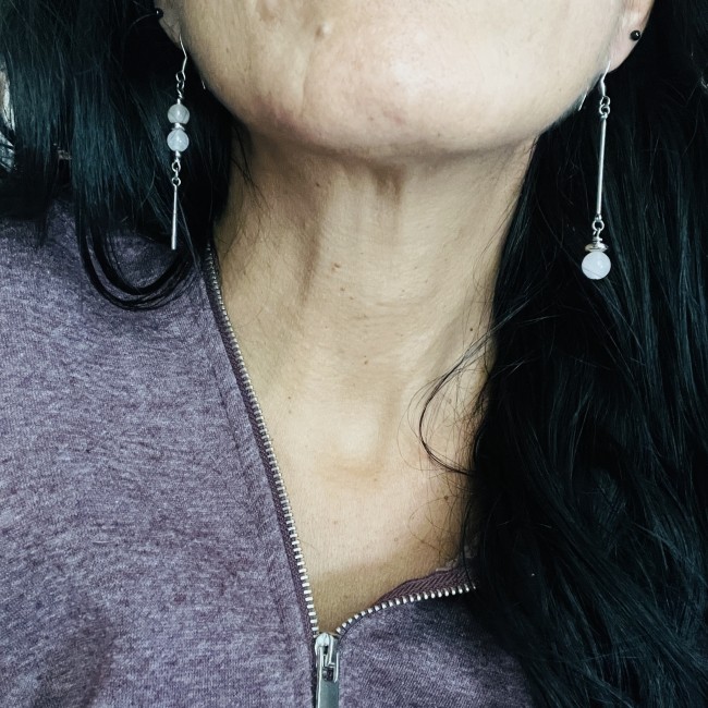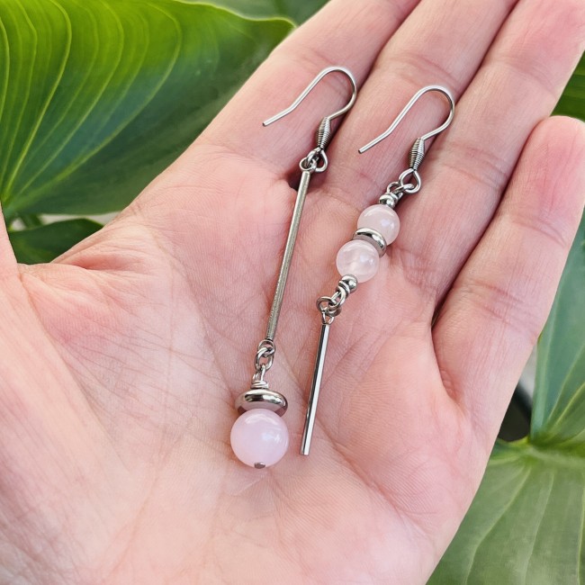 Originales et pleines de charme, ces boucles jouent sur l’asymétrie : une barre argentée épurée d’un côté, deux perles de Quartz rose de l’autre. Leur style contemporain apporte une touche moderne et élégante à toutes vos tenues.
