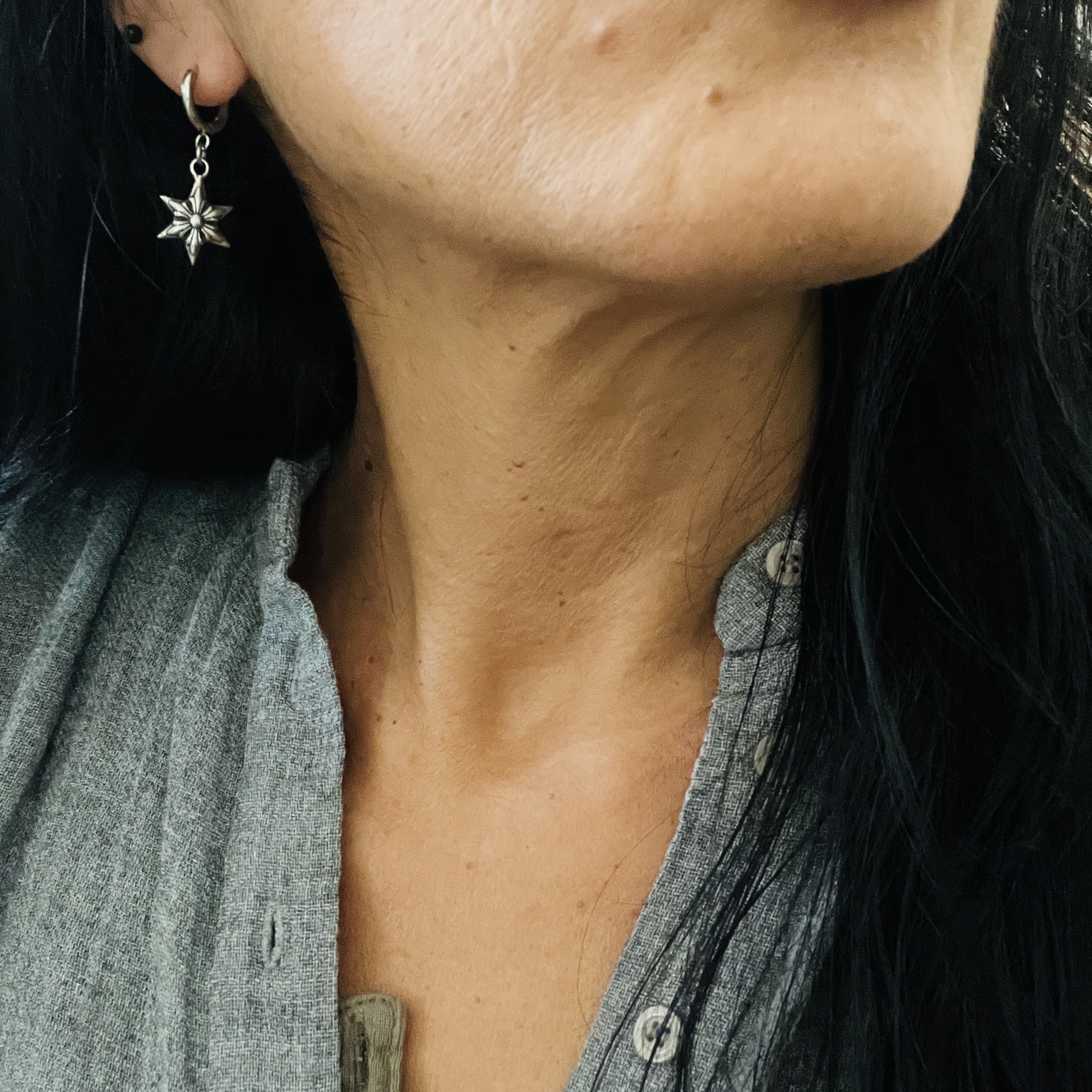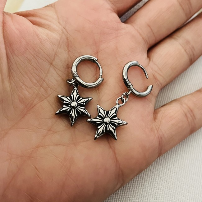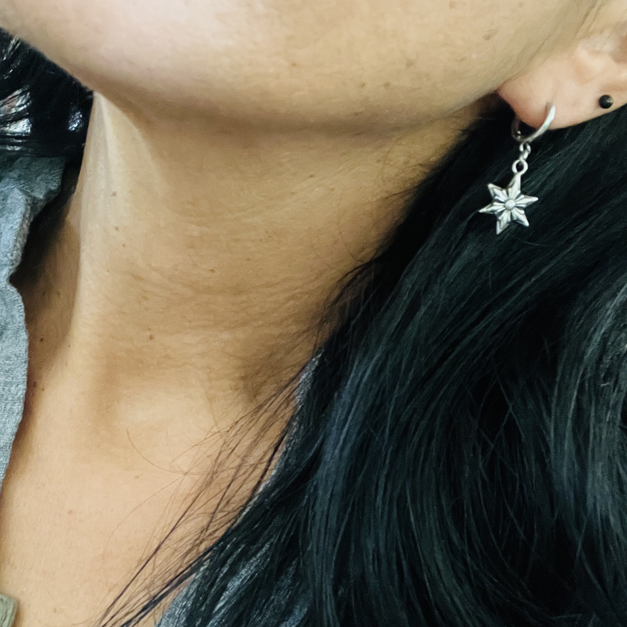 Dormeuses avec jolies étoiles décorées. Acier inoxydable. Long 3cm