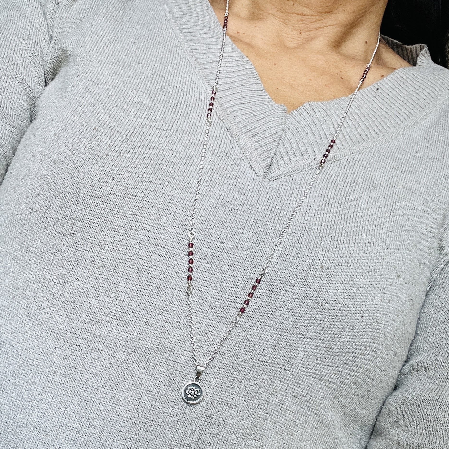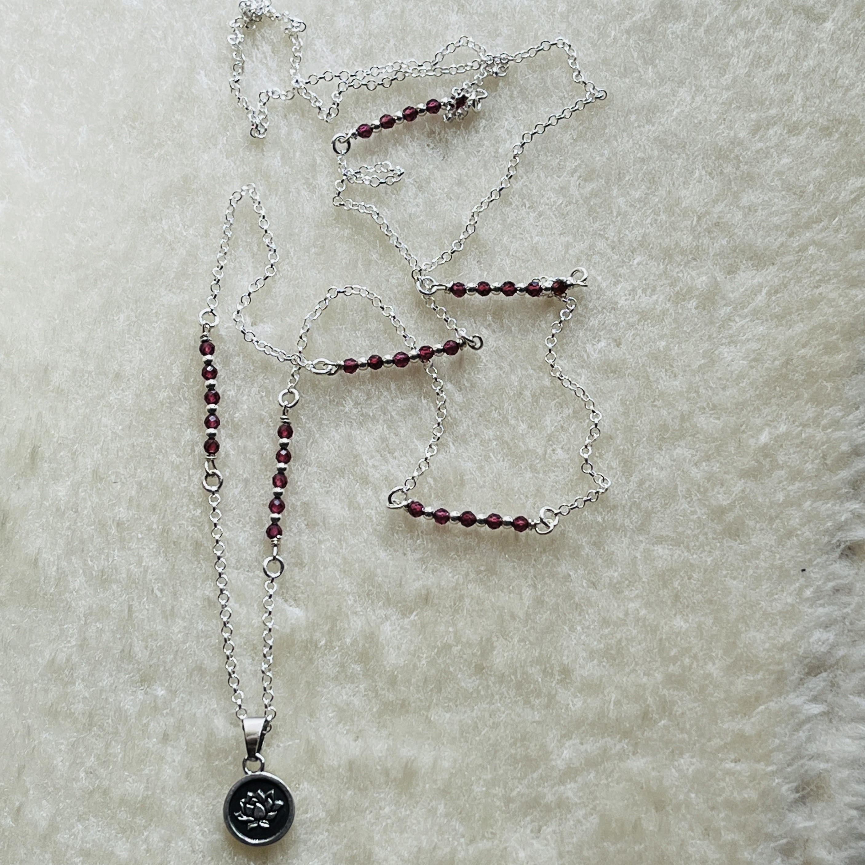 ➤ Matières : Argent 925 – Grenat naturel facetté – Médaillon lotus