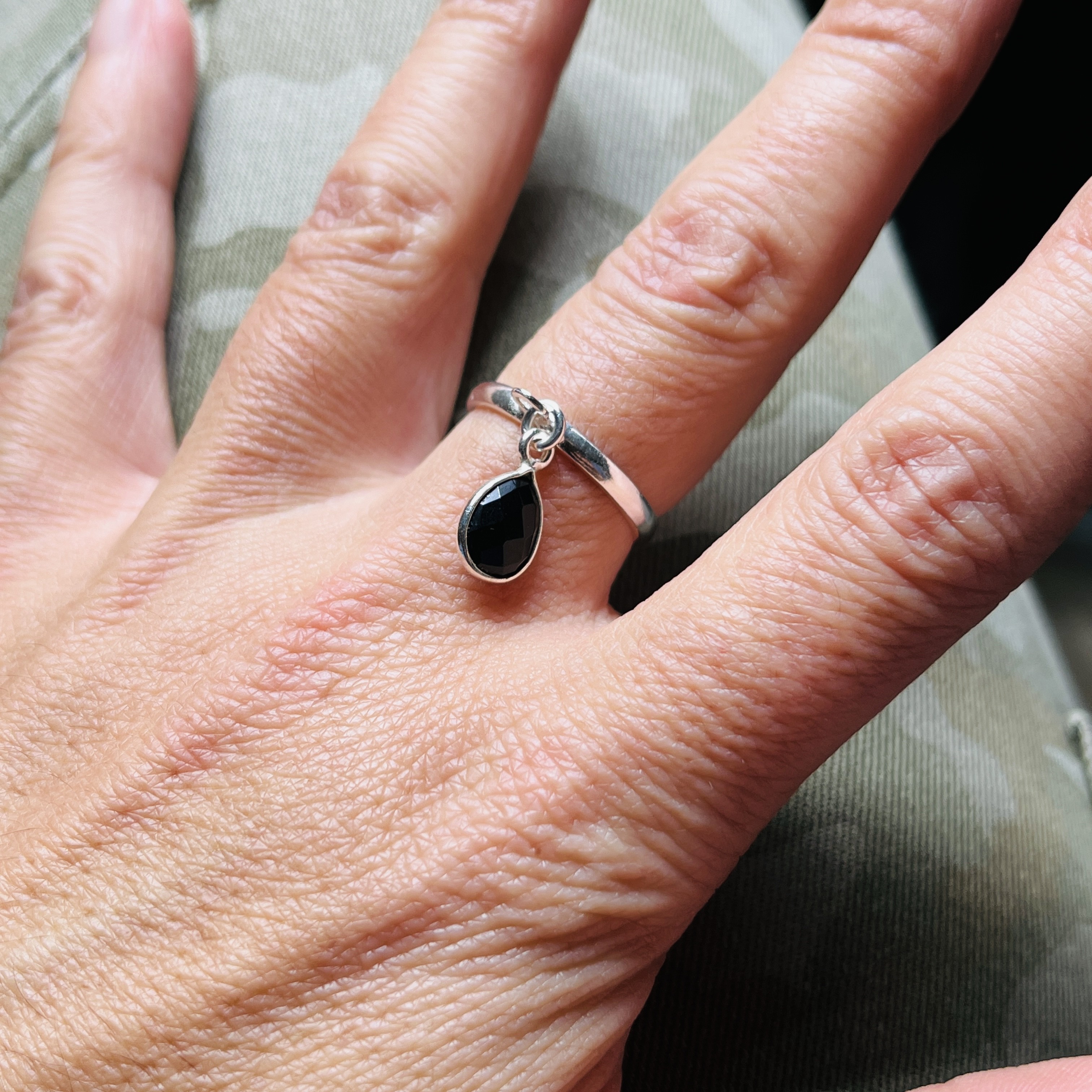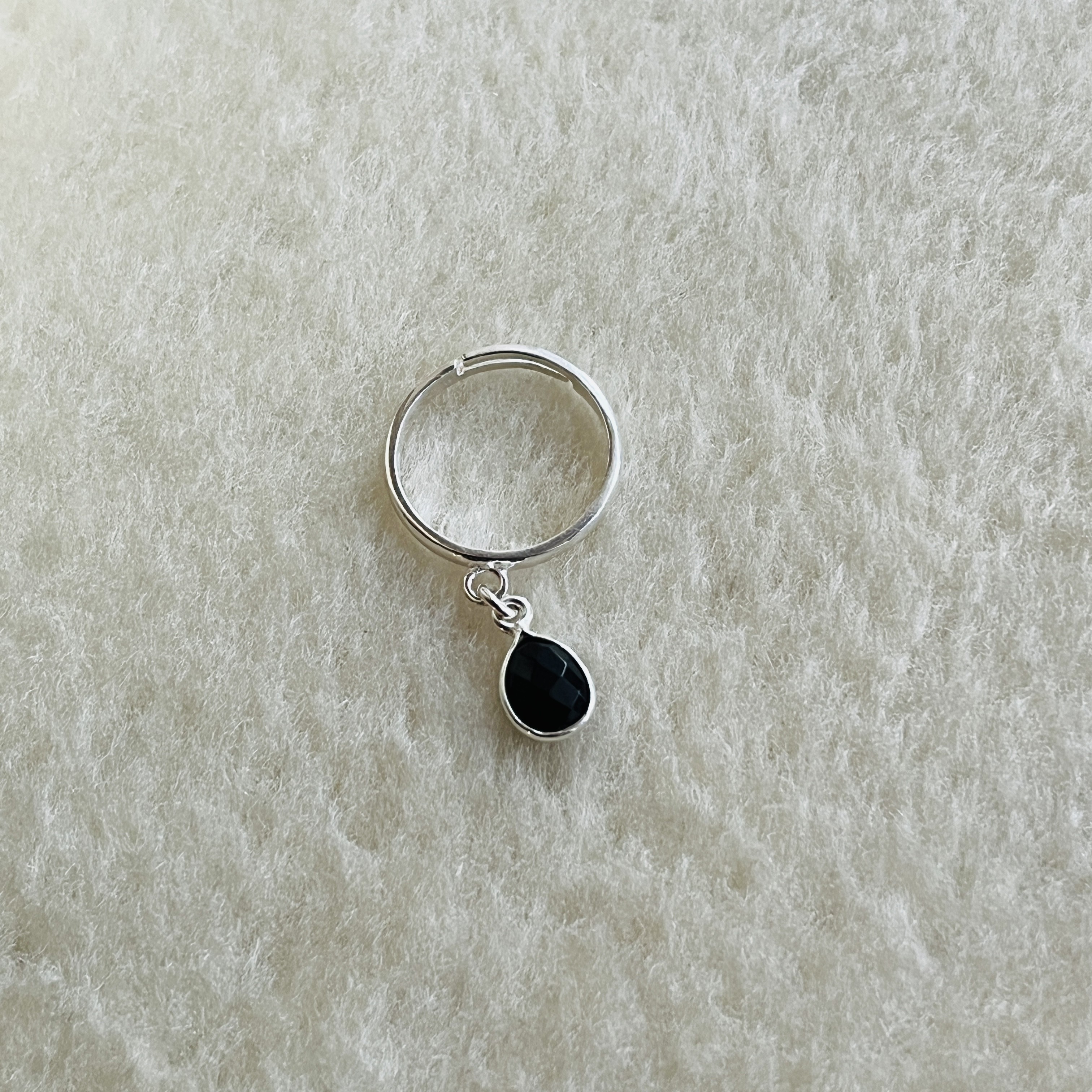 Un style chic et intemporel… Cette bague réglable (T51 à 58) en argent 925 est sublimée par une goutte facettée de spinelle noire, pierre de protection et de force intérieure.