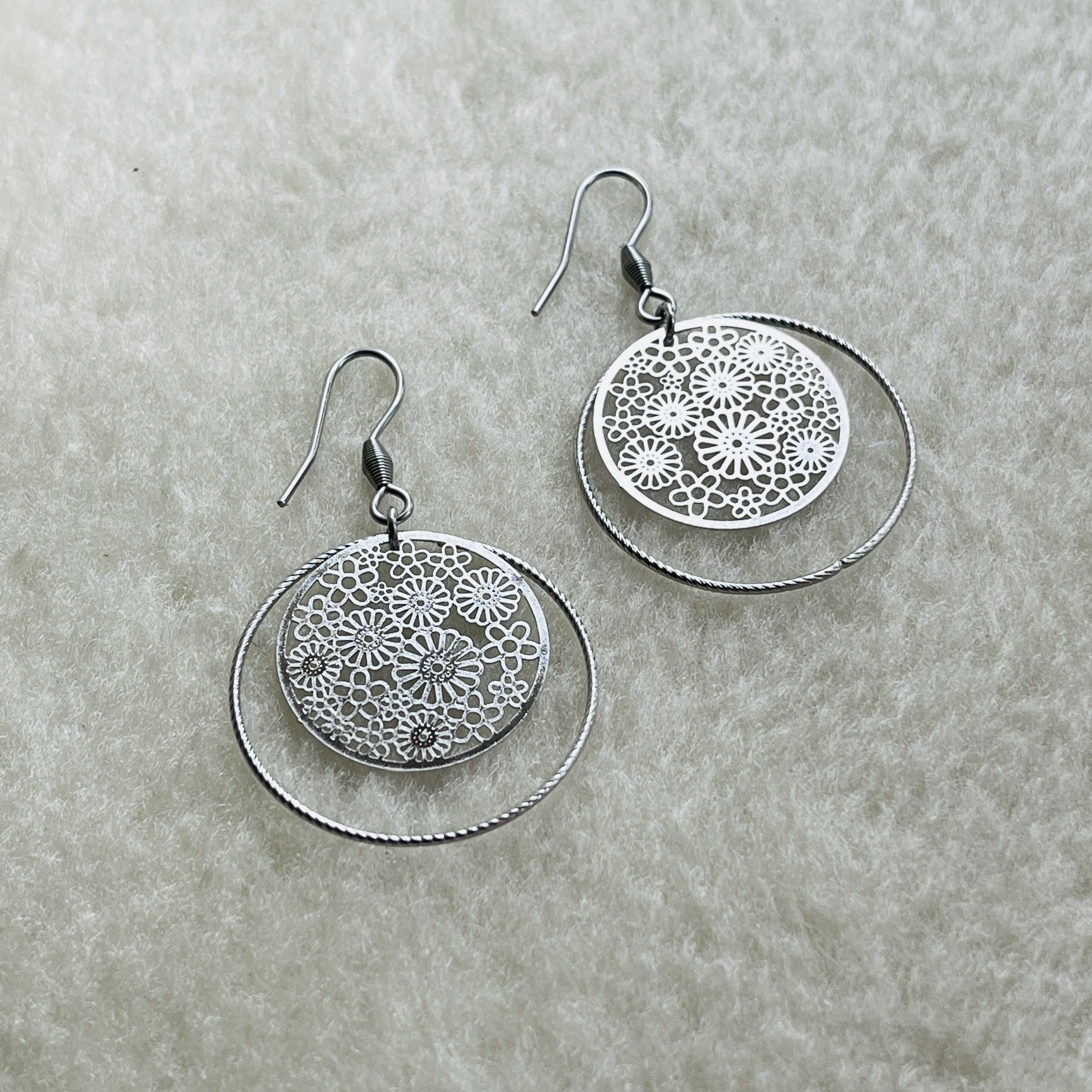 Boucles d'oreilles style créoles, fines et légères avec cercles torsades et mandalas ajourés fleurs.