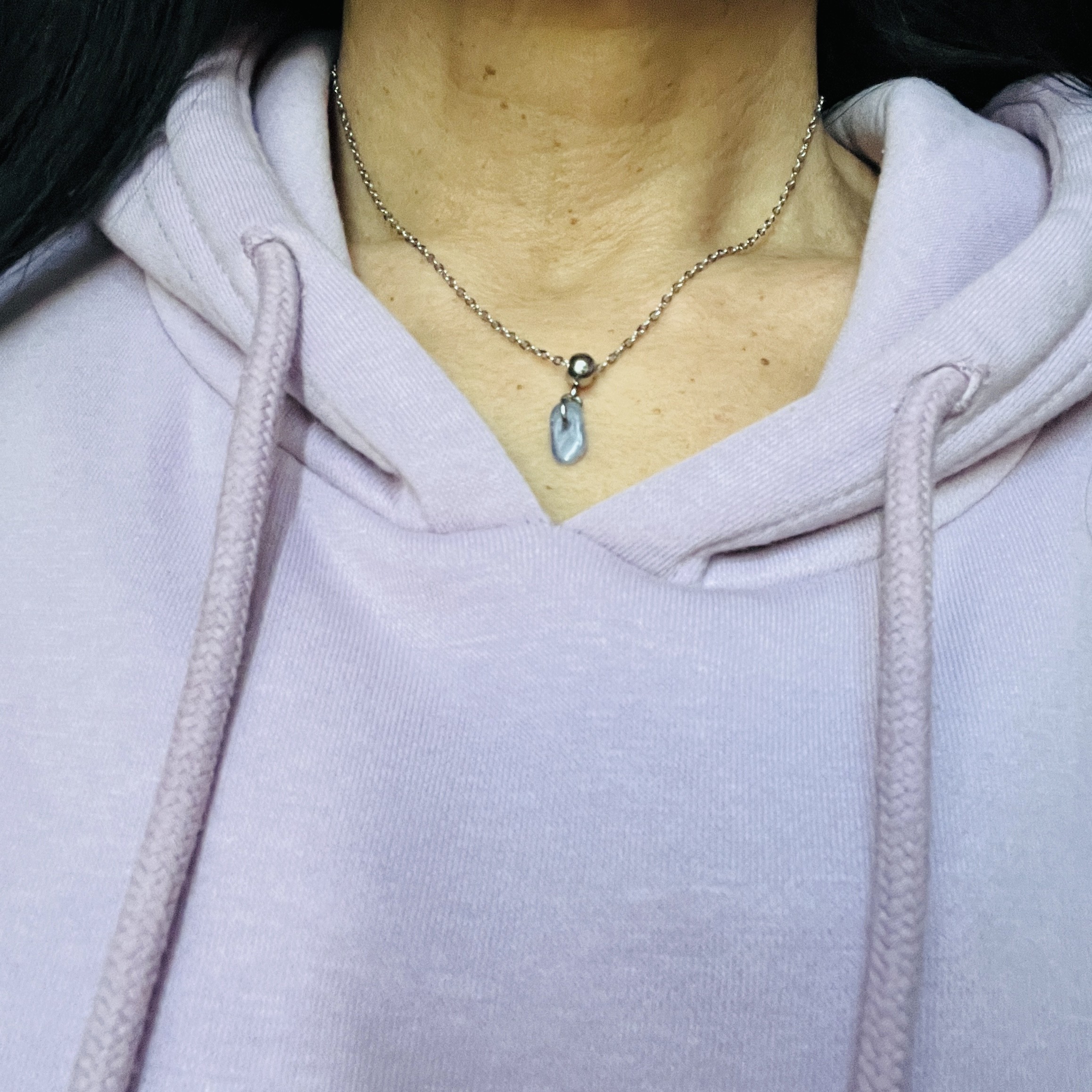 Collier fin et minimaliste avec Tanzanite sur bélière, version argentée.