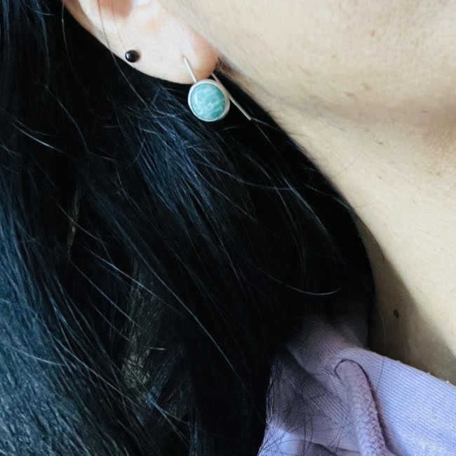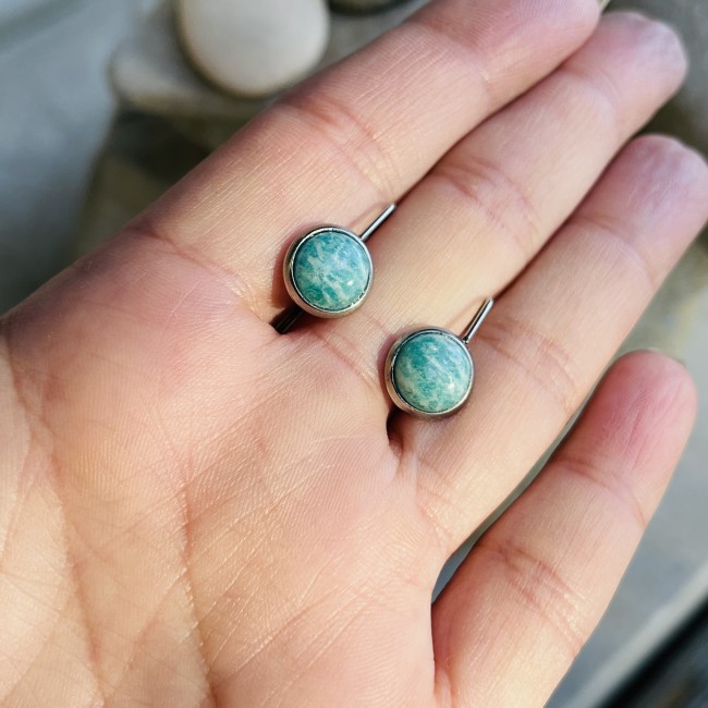 Boucles d'oreilles cabochons d'Amazonite de 8mm
