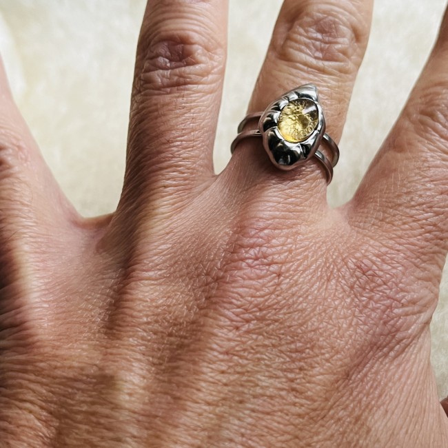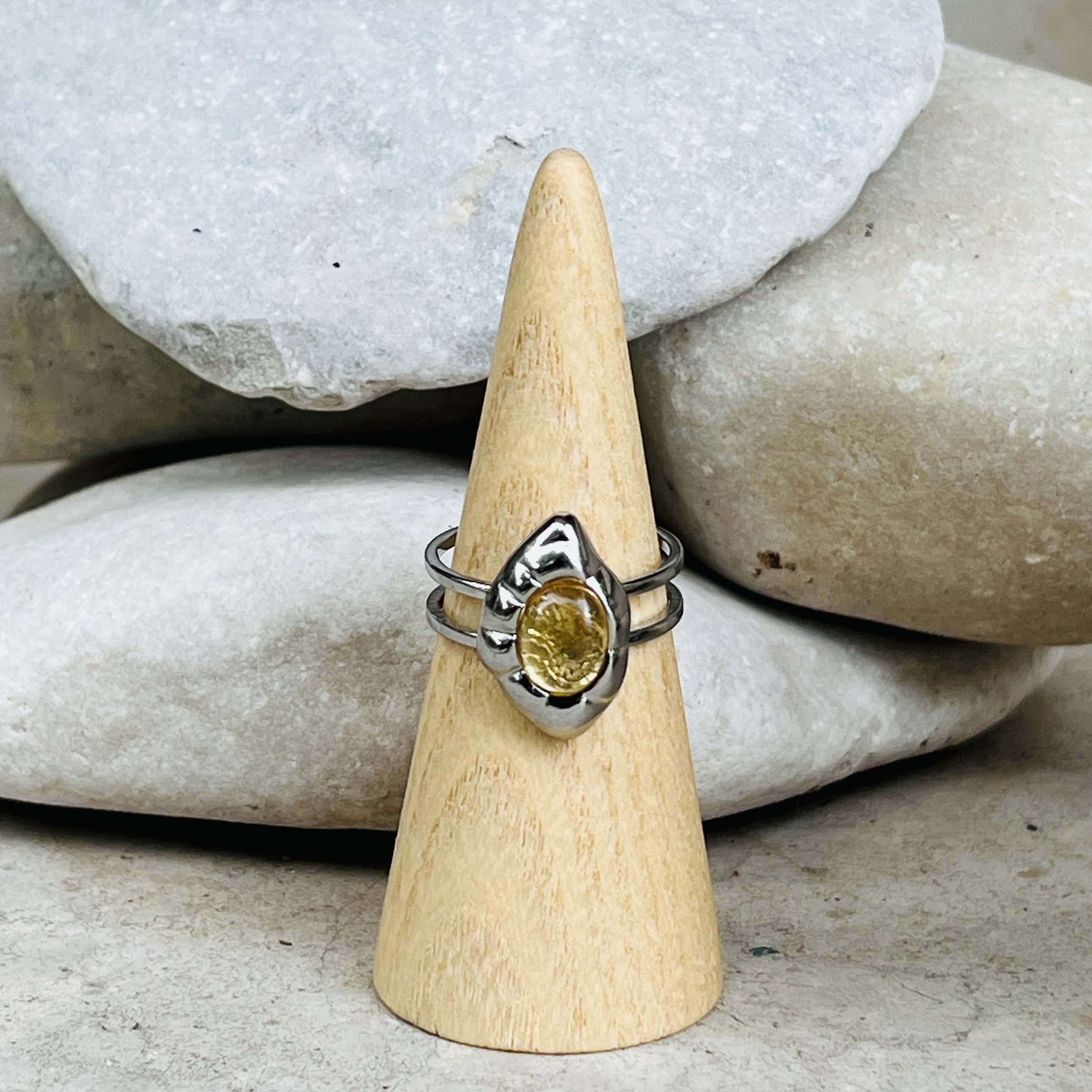 Bague Cabochon Citrine en acier inoxydable, réglable T53/60