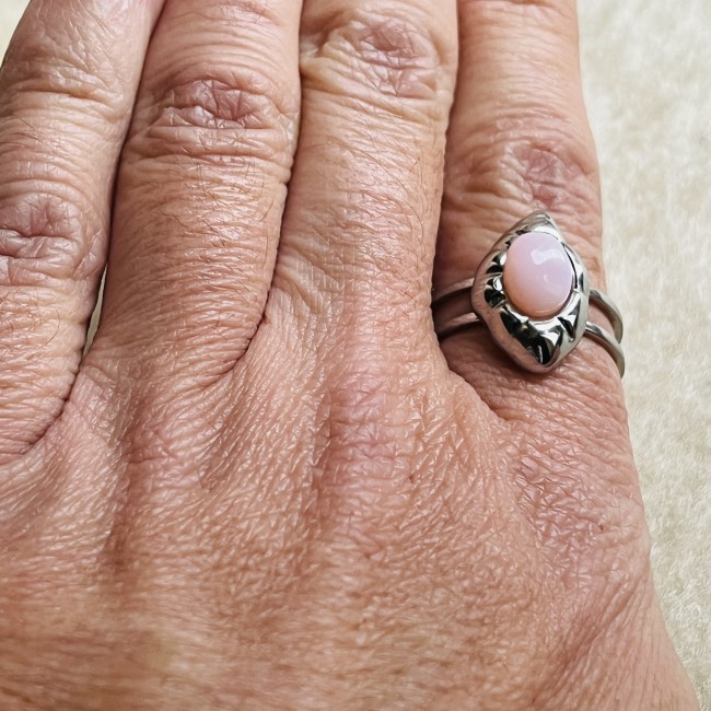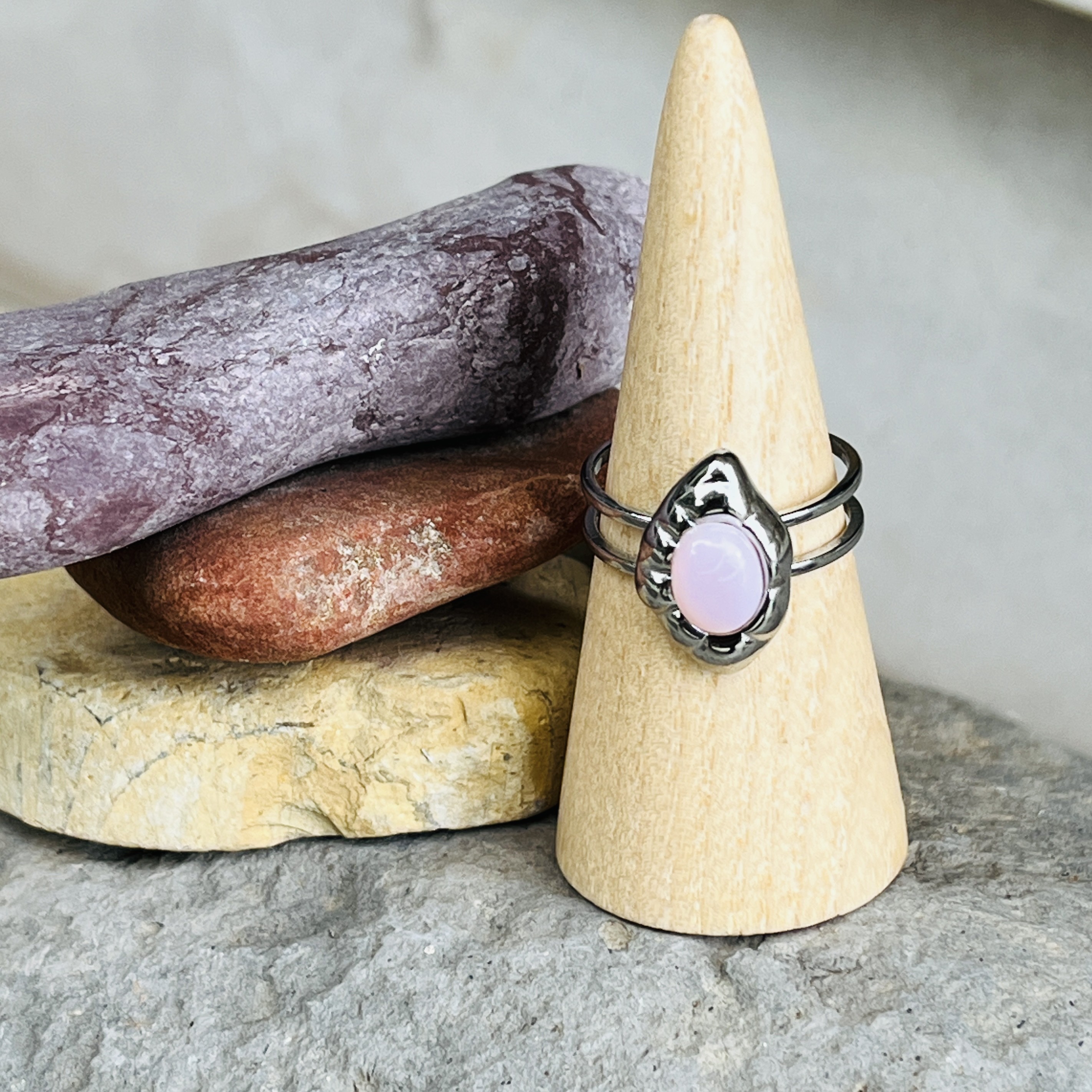 Bague Cabochon Opale rose en acier inoxydable, réglable T53/60