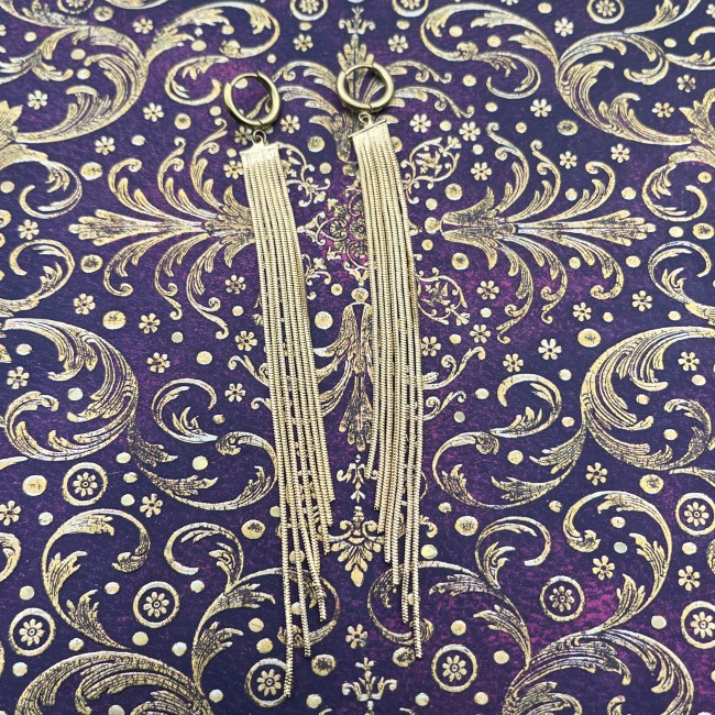 Boucles d'oreilles sur Dormeuses en acier inoxydable, pendants franges en laiton.