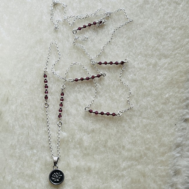 Collier long Grenat et Lotus RÉSERVÉ Martine.L