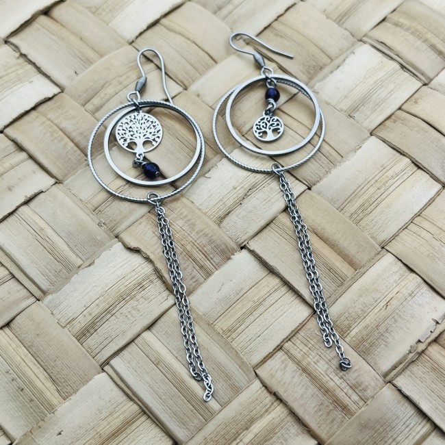 Boucles d’oreilles asymétriques Arbre de vie