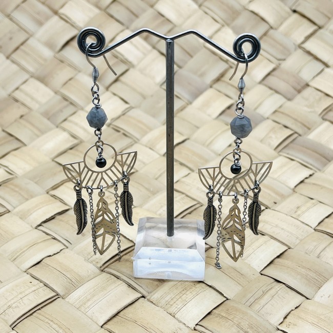 Boucles d’oreilles Jaspe Dalmatien et Lave